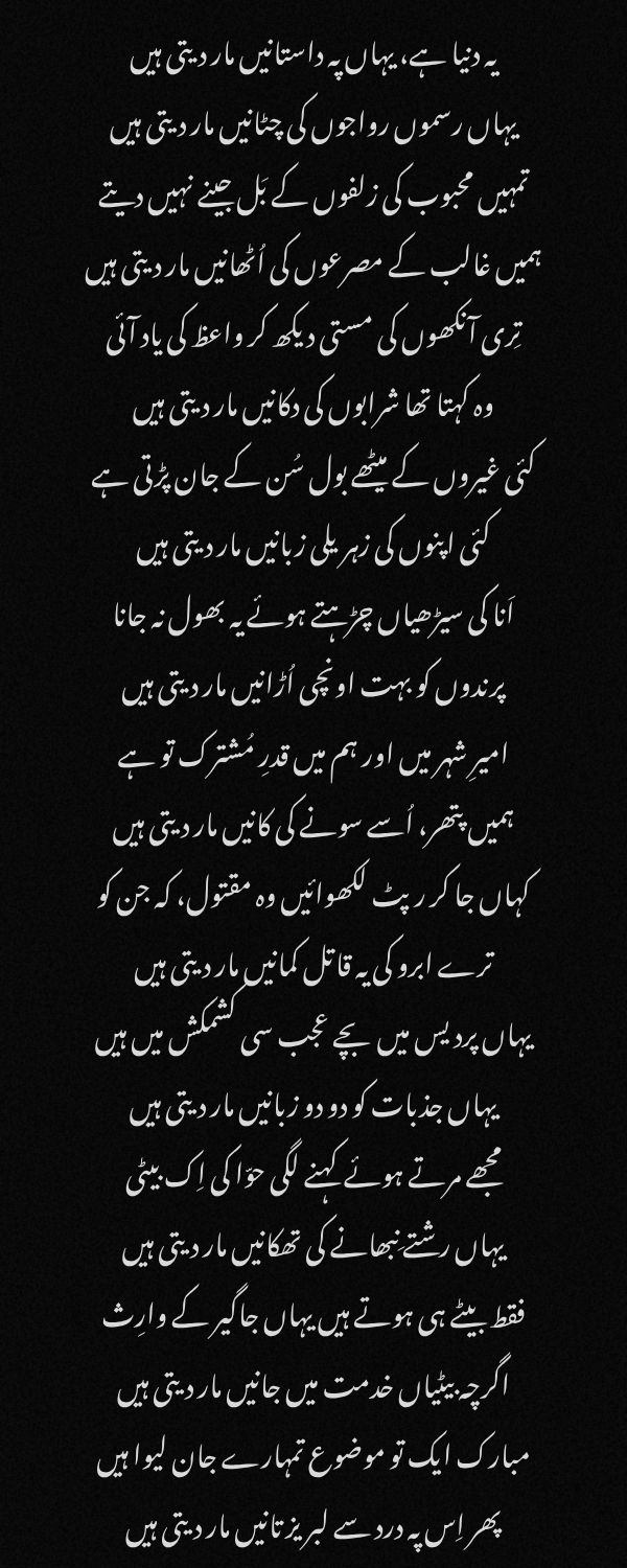Yahan Rasmon Rawaajon Ki Chataanen Maar Deti Hain.